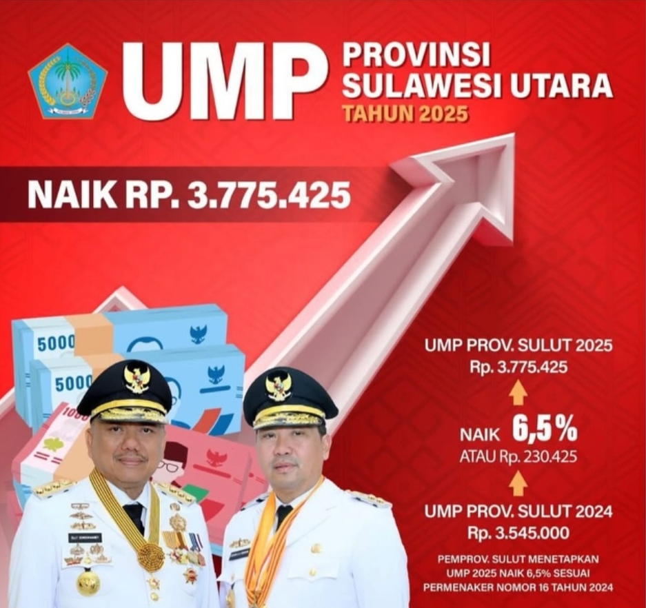 Berdasarkan keputusan tersebut, UMP Sulut menjadi Rp.3.775.425 pada tahun 2025 angka ini naik 6,5 persen dari tahun sebelumnya.