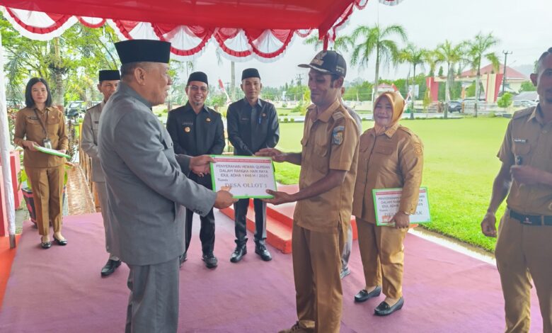 Konten news – Dalam momentum peringatan Hari Lahir Pancasila, Pemerintah Kabupaten Bolaang Mongondow Utara (Boltara) turut mengukir semangat kebersamaan dan kepedulian sosial dengan menyerahkan hewan kurban secara simbolis dalam rangka menyambut Hari Raya Iduladha 1446 Hijriah.bertempat di halaman kantor Bupati. Senin 02/06/2025
