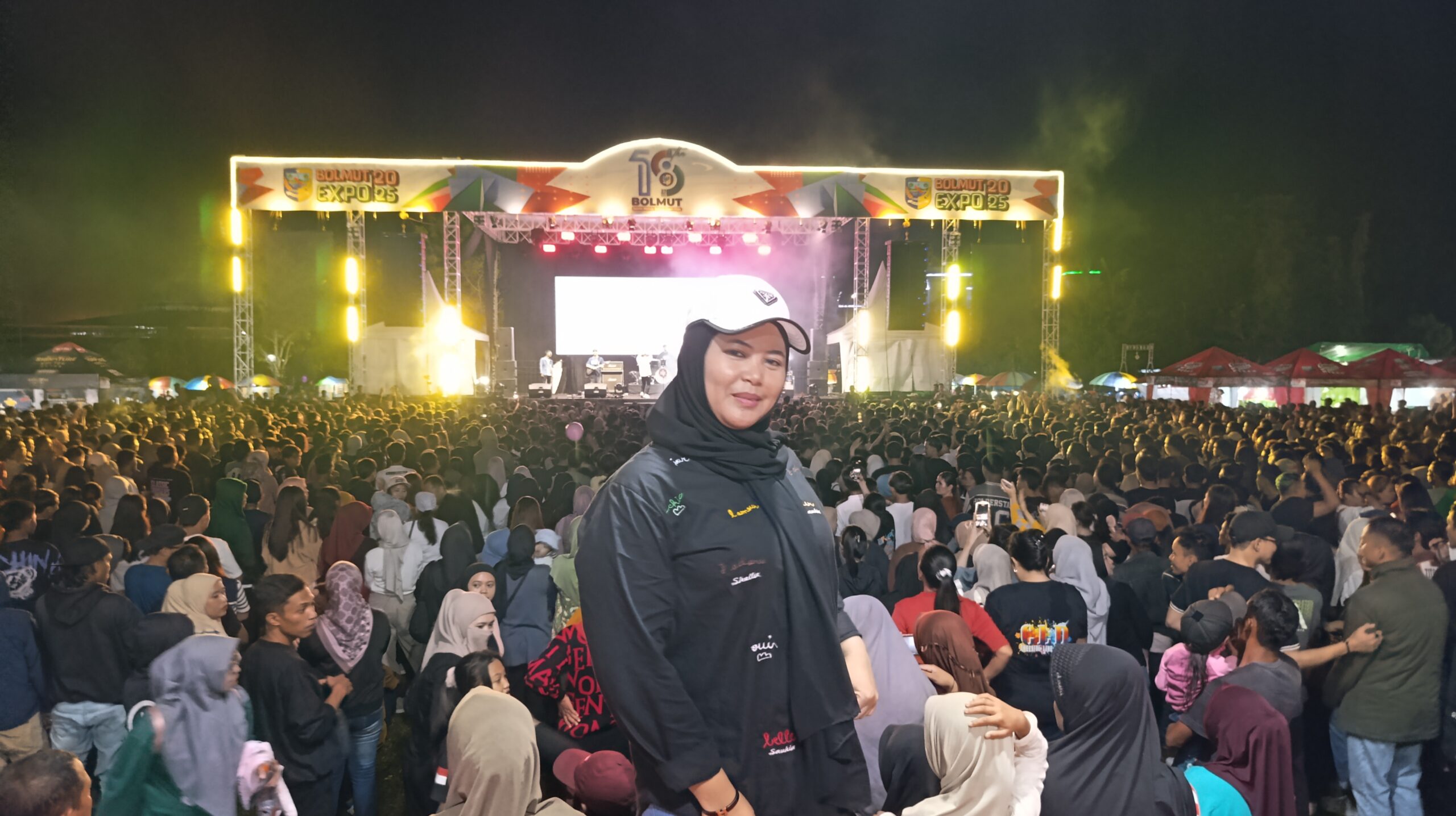 terlihat hadir di tengah-tengah lautan penonton, Anggota Dewan Perwakilan Rakyat Daerah (DPRD) Bolmut, Dewi Astuti Mondo. Ia tampak larut dalam kemeriahan, ikut menikmati alunan musik Dandi Barakati bersama ribuan warga lainnya.